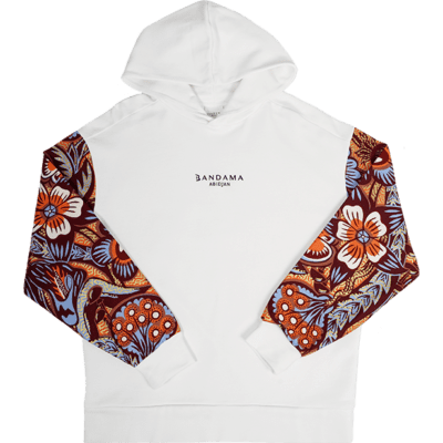 Hoodie exclusif confectionné à partir de coton 100% bio et sublimé avec un tissu d’exception; le Super-wax
