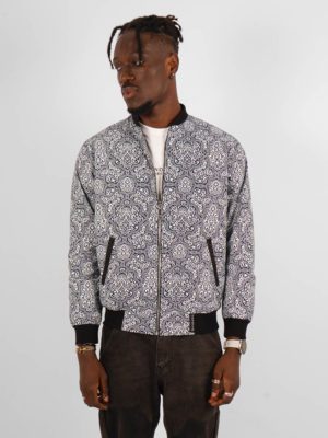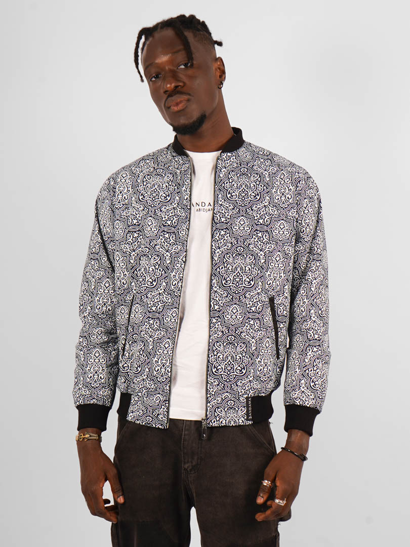 Ce bomber est confectionné en wax authentique, produit en Côte d’Ivoire et constitué à 100% de coton.