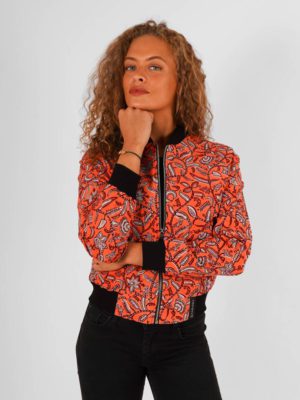 Ce bomber est confectionné en wax authentique, produit en Côte d’Ivoire et constitué à 100% de coton.