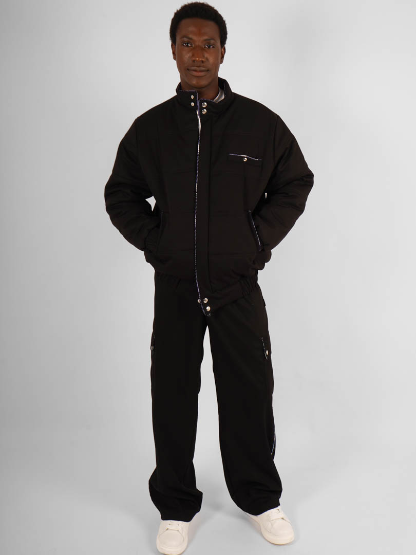 Adou mesure 185 cm et porte un pantalon de taille M.