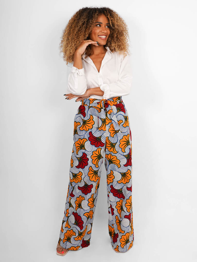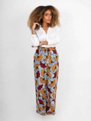 Ce pantalon est confectionné en wax authentique, produit en Côte d’Ivoire et constitué à 100% de coton.