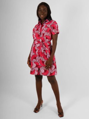 Avec ses détails travaillés et sa ceinture ajustable, elle est confectionnée en wax authentique ivoirien 100% coton.