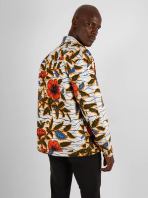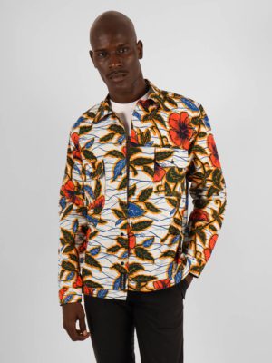 Cette surchemise est confectionnée en wax authentique, produit en Côte d’Ivoire et constitué à 100% de coton.