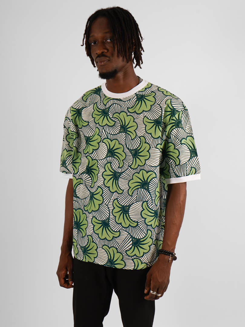Ce t-shirt oversize est confectionné en wax authentique, produit en Côte d’Ivoire et constitué à 100% de coton.