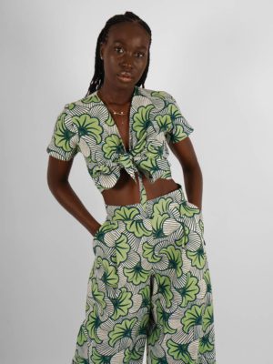 Il est confectionné en wax authentique, produit en Côte d’Ivoire et constitué à 100% de coton.